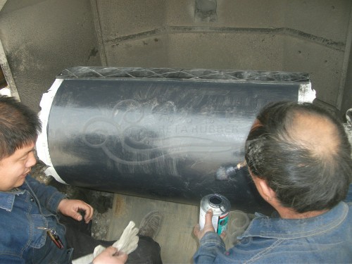 以下是瑞塔為混凝土攪拌站提供的現場滾筒包膠服務,滾筒位于離地面3米位置,滾筒直徑1.15米,之前滾筒包膠先需租用吊車將其吊卸下來,然后拉到廠區經行熱硫化包膠,其使用壽命較不超過1年,而且每次更換維護成本較高,瑞塔橡膠這次為客戶提供提供現場包膠服務,質保2年,無需拆卸,包膠總計花費6小時,即包即用大大降低客戶的停機維護時間,很好的為客戶解決問題。