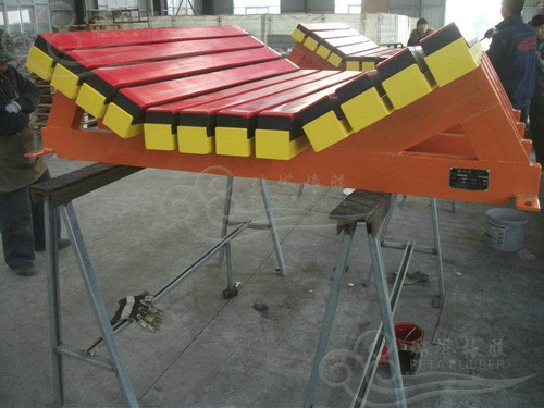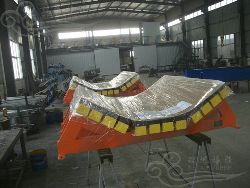以下圖片是瑞塔橡膠第12次為榆林火電廠用戶提供的緩沖床系統(tǒng)服務(wù),自2010年以來合作以來我們已經(jīng)與客戶建立相當(dāng)?shù)男湃侮P(guān)系,用戶確定訂單后,我們便均派出專業(yè)施工人員人員去現(xiàn)場采集緩沖床數(shù)據(jù),這次是新的皮帶安裝點(diǎn)雖然落料高度低于2米,但是最大顆粒直徑卻在400mm-500mm之間沖擊力較大,根據(jù)我們的沖擊力核算表其選型在中型緩沖床與重型緩沖床之間,為此我們對緩沖床的設(shè)計及后期使用做了充分的考慮,最終確定為以下樣式。